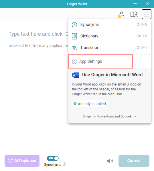 Go to the Ginger desktop app